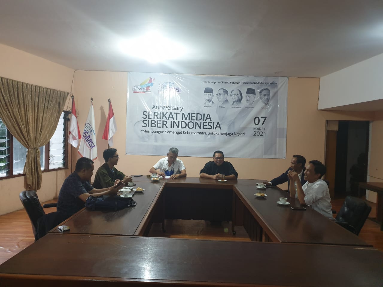 JAKARTA – Ketua Umum Partai Rakyat Demokratik (PRD) yang kini menjadi Ketum Umum DPP Partai Adil Makmu (PRIMA), Agus Jabo Priyono berkunjung ke kantor pusat Serikat Media Siber Indonesia (SMSI) di Jl Veteran II No 7C-Jakarta, Selasa, (30/3/2021).
