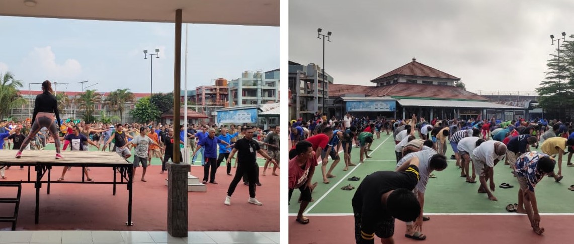 Senam pagi ini dilaksanakan di Lapangan tenis Lapas Kelas I Palembang dan diikuti oleh warga binaan dengan antusiasme tinggi.