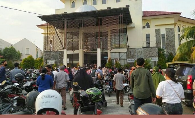 Warga antusias mengikuti vaksinasi. Terlihat ribuan masyarakat berdatangan untuk mendapatkan vaksin, seperti yang terjadi di gedung guru Komplek Kantor Kementerian Agama Pekanbaru.