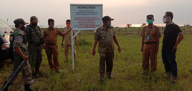 LEBAK – Terkait adanya tanah timbul di batas area sempadan pantai yang berada di kampung Jogjogan Desa Darmasari Kecamatan Bayah Kabupaten Lebak Provinsi Banten,” Pasalnya pihak pemerintah daerah kabupaten Lebak melalui Forkopimcam Bayah, terdiri dari Camat Bayah Aan Juanda beserta jajaran Satuan Pol PP, Kapolsek Bayah AKP. Yogie Roozandi bersama anggota dan anggota Koramil 0315/Bayah melakukan pemasangan Plang di atas lahan tanah timbul, Senin (31/8/2020).