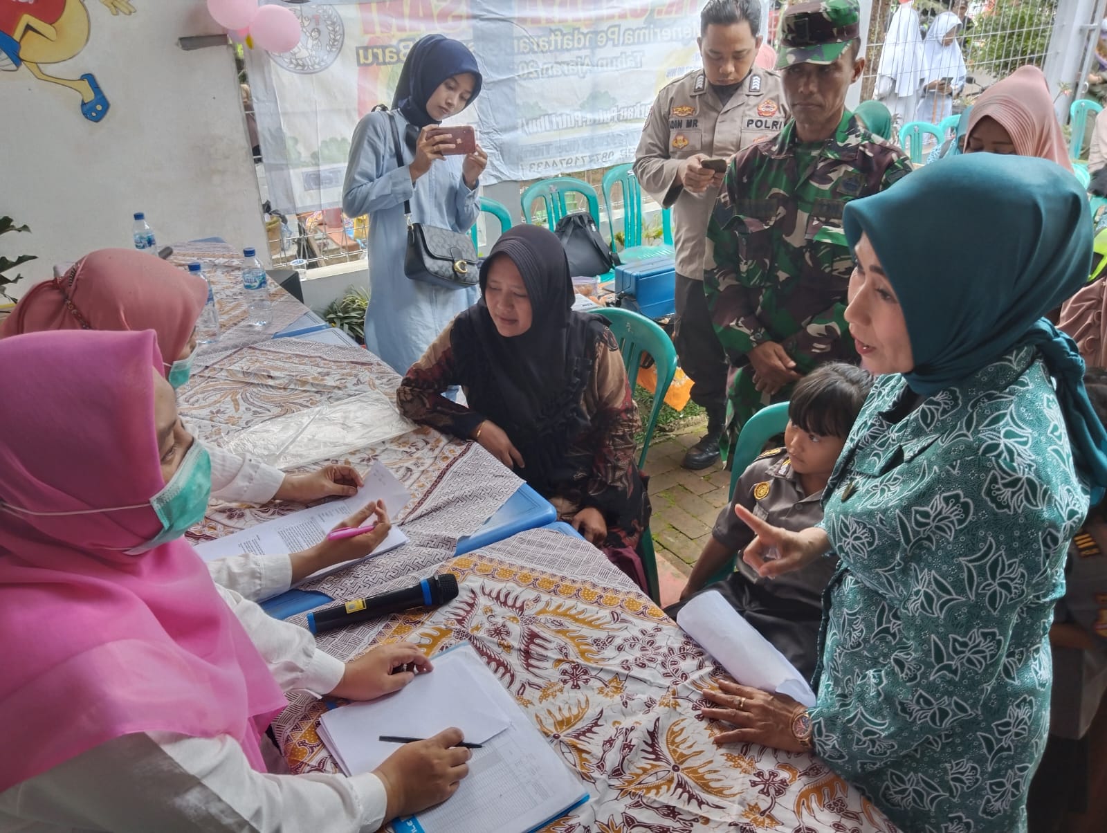 Dalam kunjungannya ke Posyandu, Ade Jumaiah Syafrudin juga melalukan monitoring dan ikut memberikan obat tetes imunisasi.