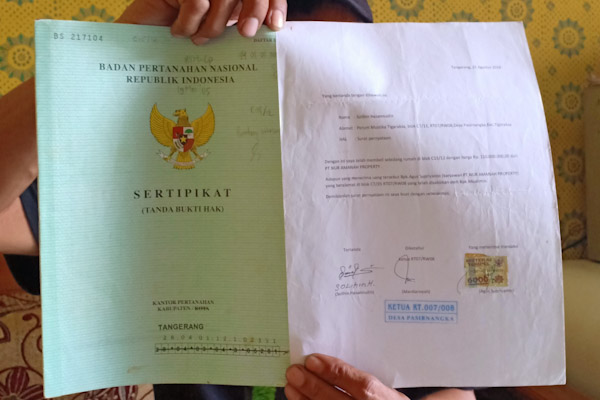 “Kalau transaksinya kan lewat Pak Agus Supriyanto, karyawan bagian penjualan PT. Nur Amanah Property, tapi kan di situ juga ada Haji Mardiansyah, guru ngaji di sini (Kompleks Mustika Tigaraksa-red), makanya kita percaya aja, soalnya kan dia guru ngaji juga,” katanya.