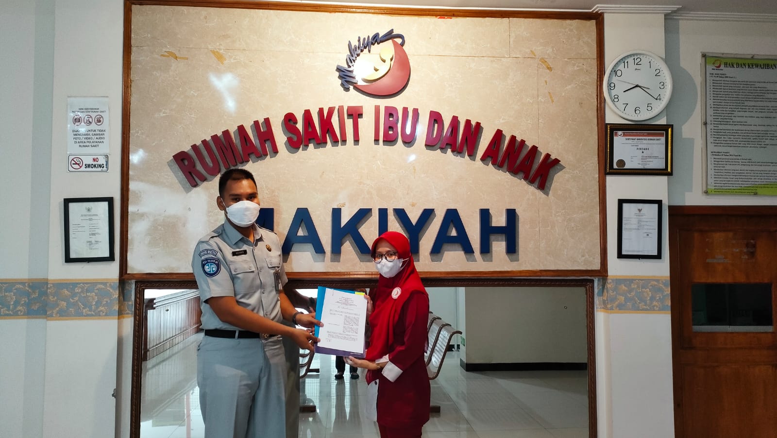 TANGERANG – Petugas Jasa Raharja Tangerang Perwakilan Tangerang Cabang Banten Mulya Agung Minang Putra melakukan kunjungan ke Rumah Sakit Ibu dan Anak Makiyah Kota Tangerang terkait penandatanganan Perjanjian Kerja Sama dalam rangka penanganan pasien korban kecelakaan lalu lintas di wilayah Tangerang. Jumat, (28/10) lalau.