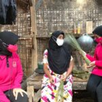 PANDEGLANG – Bhayangkari Daerah Banten saat pelaksanaan bakti sosial juga mengunjungi salah satu pengrajin sapu lidi di Desa Majau, Kecamatan Saketi, Kabupaten