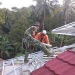 CILEGON – Kegiatan TMMD 112 Tahun 2021 Kodim 0623/Cilegon melaksanakan pemasangan genteng metal roop hari ini memasuki tahap penyelesaian untuk Masjid Al