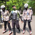 Bagikan Puluhan Masker, Satlantas Polres Serang Kota Patroli Gunakan Sepatu Roda