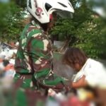 BANTEN, (21/08). Babinsa Koramil 0203/Kramatwatu Kodim 0602/Serang Sertu Wahyudi membantu Orang Dalam Masalah Kejiwaan (ODMK), dengan lembut membujuk agar mau dipakaikan baju