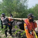 Personel Ditpolairud Polda Banten Bersama Tim SAR Lakukan Evakuasi Penemuan Mayat di Pesisir Pulo Ampel