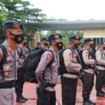 SERANG – Sebanyak 1 SSK personel Batalyon B Pelopor Sat Brimob Polda Banten ikuti Apel Pergeseran Pasukan Pengamanan TPS Pilkada Bupati/Walikota dan
