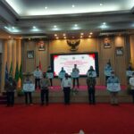 SERANG – Sekretaris Daerah Provinsi Banten Al Muktabar bersama Deputi Direktur BPJS Ketenagakerjaan Kanwil Banten Eko Nugriyanto menyerahkan secara simbolis bantuan pemerintah