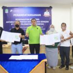 SIBERINDO.CO – Plt Wali Kota Bekasi Tri Adhianto dan Wakil Direktur Utama PT Mora Telematika Indonesia (Moratelindo) Indonesia Jimmy Kadir tanda tangani