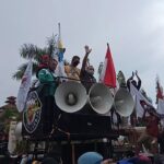 CILEGON – Serikat buruh FSPMI (federasi serikat pekerja metal Indonesia) kembali melakukan aksi penolakan UU cipta kerja di depan gedung kantor Walikota