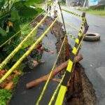 LEBAK Bangunan drainase Kampung Pasir Makam Desa Tanjungsari, Kecamatan Maja Kabupaten Lebak Banten rusak atau ambrol disebabkan mobil dam truck bermuatan