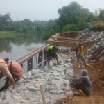 Tangerang – Pembangunan jalan longsor akibat tergerus aliran Sungai Cisadane di Desa Tanjung Burung Kecamatan Teluk Naga Kabupaten Tangerang kini telah memasuki