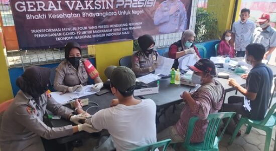 SERANG – Hari ketujuh Pemberlakuan Pembatasan Kegiatan Masyarakat (PPKM) Darurat, Polda Banten dan Polres Jajaran terus melakukan kegiatan vaksinasi kepada masyarakat. Saat