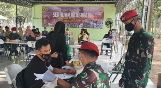 KOTA SERANG – Di tengah meningkatnya kasus Covid-19, Grup 1 Kopassus menyelenggarakan vaksinasi Covid-19 massal bagi warga binaan Grup 1 Kopassus, Komandan