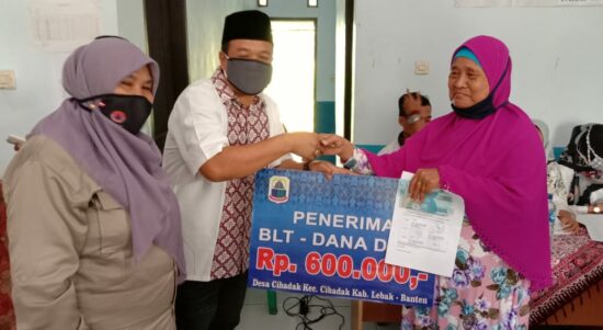 LEBAK- Kepala Desa Cibadak, Kecamatan Cibadak, Kabupaten Lebak, Provinsi Banten, Burhannuddin SE, membagikan Bantuan Langsung Tunai Dana Desa (BLTDD) tahap tiga, di