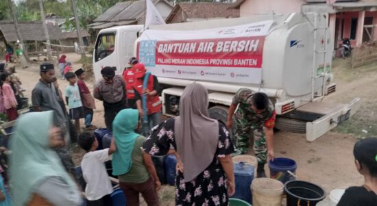 PANDEGLANG – Untuk memenuhi kebutuhan air bersih bagi masyarakat, yang mengalami kekeringan akibat kemarau panjang, anggota Koramil 0109/Munjul membantu penyaluran air bersih