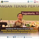 Yogyakarta – Kementerian Agraria dan Tata Ruang/Badan Pertanahan Nasional (ATR/BPN) melalui Direktorat Jenderal Tata Ruang terus melakukan sosialisasi Peraturan Pemerintah (PP) Nomor