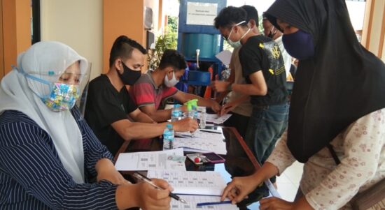 SERANG – Warga dari empat Kelurahan di Kecamatan Kasemen, terima Bantuan Sosial Tunai (BST) Tahap Empat dan Lima di halaman kantor Kecamatan