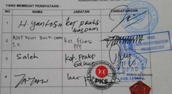 LEBAK – Respon Bupati Lebak terhadap pernyataan tujuh Fraksi dari 8 Fraksi di DPRD Kabupaten Lebak yang menolak penundaan pemilihan kepala desa