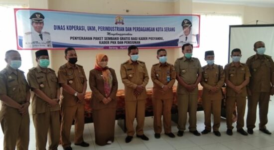 KOTA SERANG – Dinas Perindustrian, Perdagangan, Koperasi dan Usaha Kecil Menengah (Disperindagkop dan UKM) bersama Walikota Serang H.Syafrudin secara simbolis memberikan paket