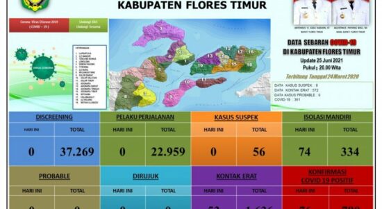 Kupang – Pemerintah Kabupaten Flores Timur, Provinsi Nusa Tenggara Timur (NTT), menyatakan  jumlah kasus baru yang terkonfirmasi positif Covid-19 di daerah itu