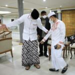 SEMARANG – Sarung batik yang dikenakan Gubernur Jawa Tengah Ganjar Pranowo menarik perhatian Ustaz Das’ad Latif saat bersilaturahmi di Rumah Dinas Puri Gedeh,