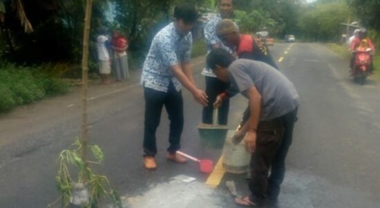 Jalan Nasional III yang Berlubang Dibangun Cara Swadaya