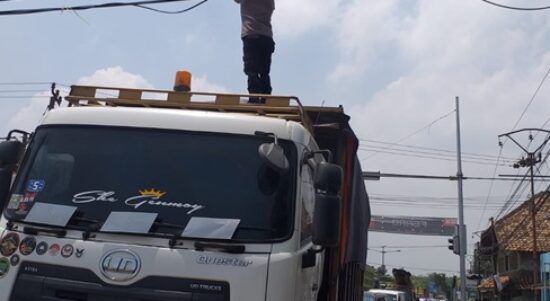 KAB.SERANG – Personil Polsek Kramatwatu Polres Serang Kota Polda Banten “ mengevakuasi Kabel Telkom yang putus dan melintang di Jalan Raya Serang
