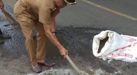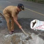 Kades Sindanghayu Laksanakan Gotongroyong Tambal Jalan Nasional