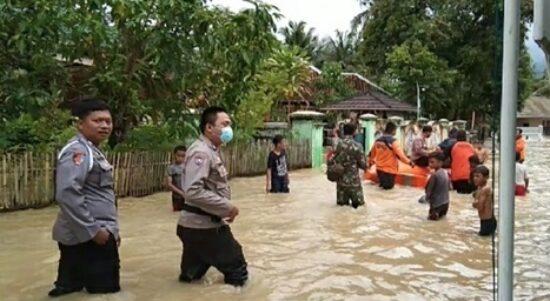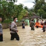 LEBAK – Kapolsek Wanasalam turun langsung memberikan nasi bungkus kepada masyarakat yang terisolasi Banjir merendam 359 rumah dengan ketinggian hingga 1 meter,