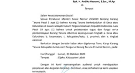 Karang Taruna Lebak Protes “Layangkan Surat Audiensi dengan Andika Hazrumi