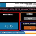 Sleman – Satuan Tugas (Satgas) Penanganan Covid-19 Kabupaten Sleman, Daerah Istimewa Yogyakarta mencatat terdapat penambahan kasus konfirmasi positif Covid-19 sebanyak 305 kasus