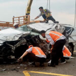Kecelakaan lalu lintas terjadi di Jalan Raya Serang – Jakarta, Kampung Pabuaran, Kecamatan Kragilan, Kabupaten Serang, Kamis (8/7/2021). Kali ini Sarmin (22)