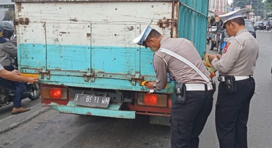 Guna Menekan Tingkat Kecelakaan Lalu Lintas, Jasa Raharja Tangerang Melakukan Pemasangan Stiker Reflektor Pada Kendaraan Truk Bersama Polres Tangerang