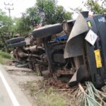 Kecelakaan Tunggal Mobil Tronton Bermuatan Limbah Batubara Terguling
