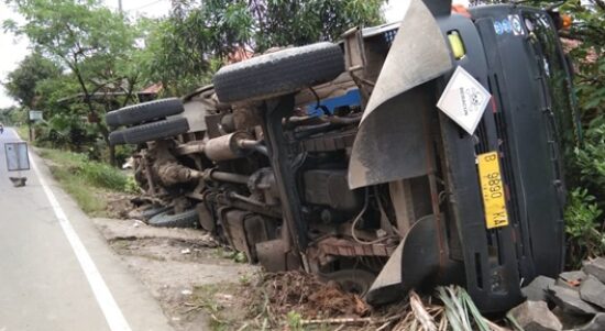 Kecelakaan Tunggal Mobil Tronton Bermuatan Limbah Batubara Terguling