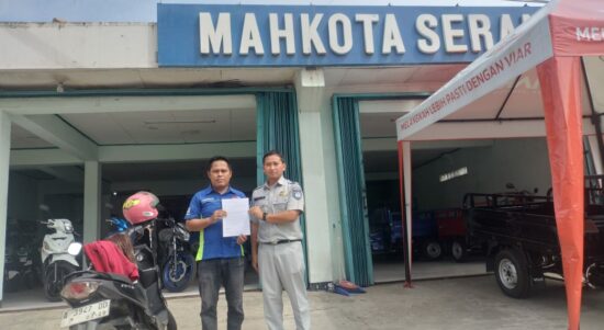 SERANG – Petugas Jasa Raharja Kantor Wilayah Banten, Samsat Kota Serang Nurochman melakukan kunjungan ke Perusahaan PT. Mahkota Inti Sejahtera Kota Serang.