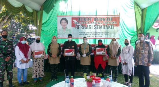 SERANG |Ketua Persit KCK Koorcabrem 064/ MY, Serang Banten Atie Gumuruh pada “Jum’at Berkah dan sekaligus Hari Ulang Tahun Ketua Persit KCK