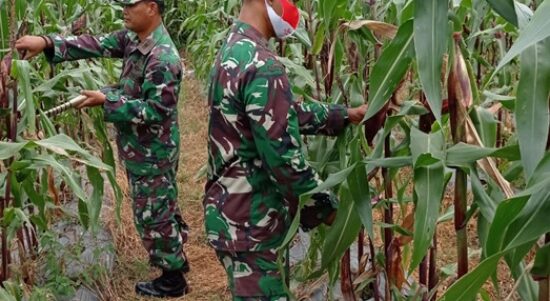 CILEGON – Bati Wanwil dan Bati Kosmos Kodim 0623/Cilegon sedang melaksanakan panen jagung pulut (ketan) yang berlokasi di Lingkungan Trate Panggung Rawi