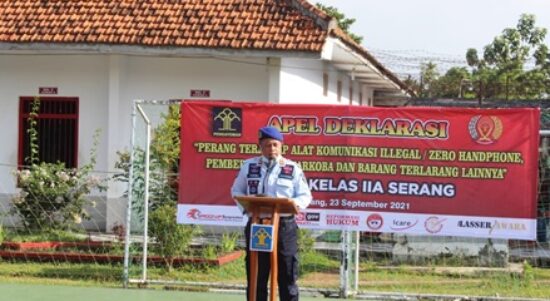KOTA SERANG – Lembaga Pemasyarakatan Kelas IIA Serang menggelar Apel Deklarasi perang terhadap alat komunikasi ilegal atau Zero Handphone, Pemberantasan Narkoba dan