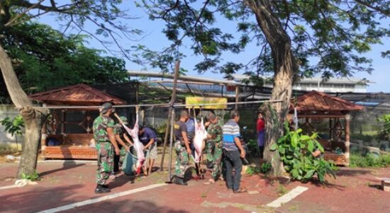 CILEGON – Pangkalan TNI AL Banten selenggarakan penyembelihan hewan qurban rinciannya 1 ekor kerbau, 3 ekor sapi dan 6 ekor kambing, dalam