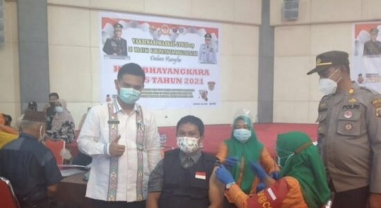 Tapanuli Selatan – Ribuan warga Lanjut Usia dan Pra Lanjut Usia mengikuti vaksinasi massal dalam rangka HUT Bhayangkara ke 75 Tahun 2021
