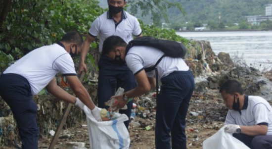 Lantamal IX/Ambon Membersihkan Pesisir Pantai Teluk Ambon