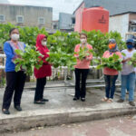 Jakarta – Kader TP PKK Kelurahan Mangga Dua Selatan, Kecamatan Sawah Besar, Jakarta Pusat, memanen sayur caisim atau sawi di Kampung Tangguh