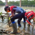 DEMAK – Gubernur Jawa Tengah Ganjar Pranowo beserta istri Siti Atikoh memimpin penanaman mangrove di area land subsidence (penurunan muka tanah), Dukuh