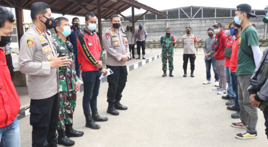 CILEGON – Dalam rangka memperingati May Day, Polres Cilegon menggelar apel pengamanan sekaligus pembagian sembako oleh Forum Komunikasi Solidaritas Serikat Pekerja Serikat