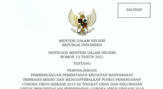 Jakarta – Menteri Dalam Negeri (Mendagri) Muhammad Tito Karnavian mengeluarkan Instruksi Menteri Dalam Negeri (Inmendagri) Nomor 13 Tahun 2021 tentang Perpanjangan Pemberlakuan