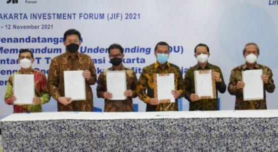 Jakarta – PT Transportasi Jakarta (Transjakarta) bersama mitra operator melakukan penandatanganan nota kesepahaman atau Memorandum of Understanding (MoU) terkait program Jakarta Langit
